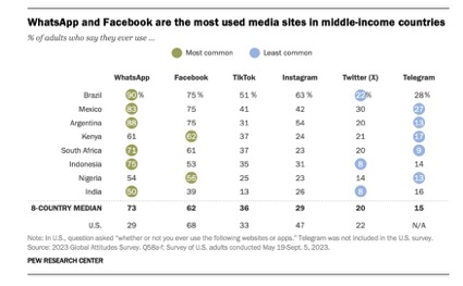 El potencial de este canal se explica, en gran medida, por su adopción masiva en la región. En América Latina, la utilización de WhatsApp oscila entre el 80% y el 90% de la población en los principales mercados. Según el informe de Pew Research Center, el uso alcanza al 90% en Brasil, al 83% en México y al 88% en Argentina. Esta penetración posiciona a la plataforma como un canal estratégico para la comunicación entre marcas y consumidores.